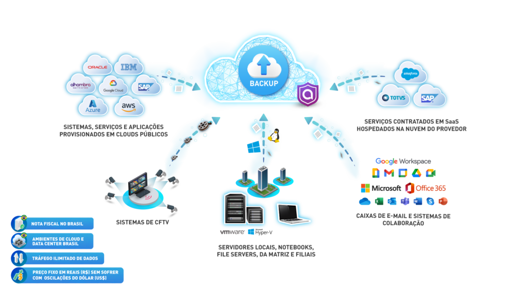 Backup e replicação de servidores em Hyper-V e VMware e banco de dados SQL Server.